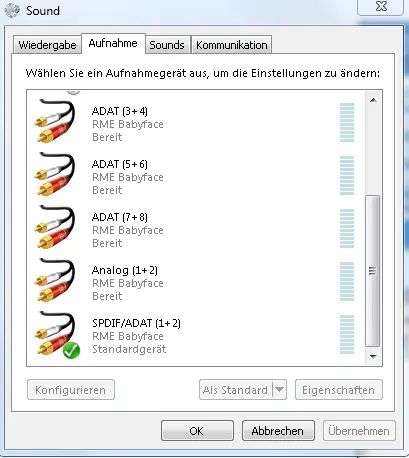 Hier nochmal paar Bilder was ich meine unter Soundwiedergabe funzt alles normal, siehe grüner Pegel. Nur unter Soundaufnahme wird nix angezeigt.