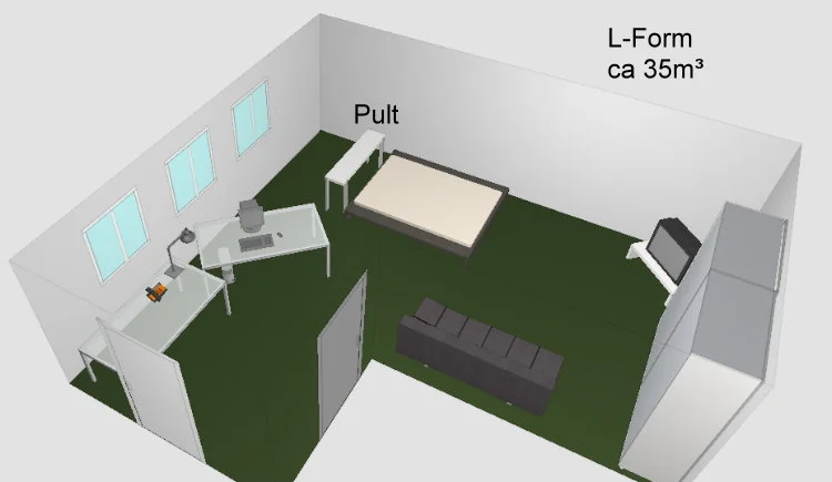 Angehängt sind 2 Bilder von meinem Raum, und da seht ihr vllt auch schon das kleine Prob (für mich zumindest) die L-Form.