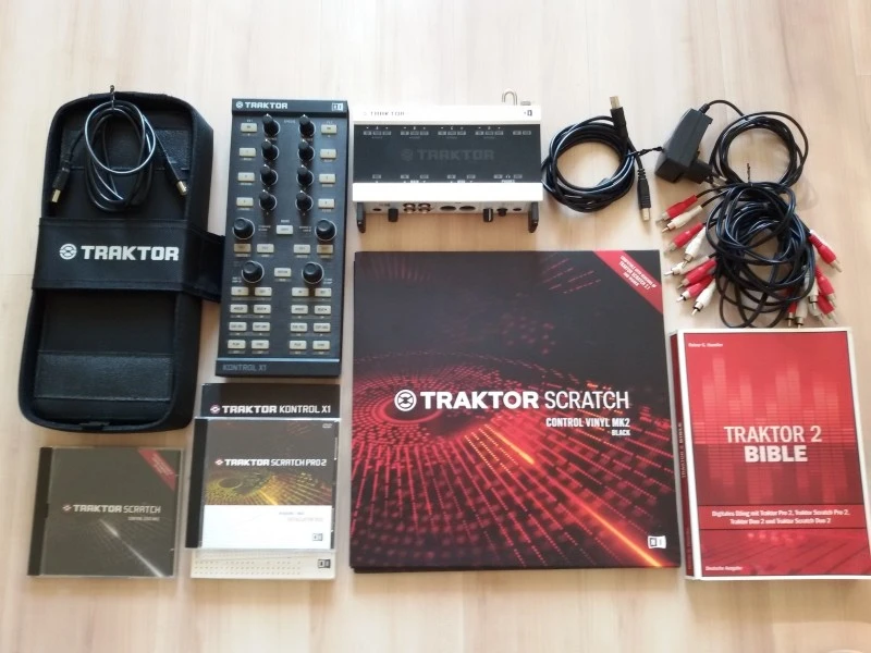 verkaufe hier ein Paket mit dem Traktor Scratch A10 Bundle, dem Kontrol X1 Controller inkl. original Native Instruments X1 Tasche, sowie dem Buch Traktor 2 Bible. Alle Teile sind zu 100% funktionsfähig und in gutem Zustand (siehe Bilder). Mit dabei sind natürlich auch alle zugehörigen Teile (Cinch Kabel, USB Kabel, Netzkabel) und die original CD's mit der Software, den Treibern, sowie Soundpaketen.
