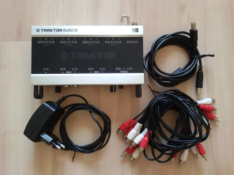 - Traktor A10 Bundle (Audio 10 Soundkarte, 2x Timecode Vinyls, 2x Timecode CD's (nie benutzt), Traktor Software CD (inkl. Update auf neuste Version 2.x), 4x Cinch Kabel je 1m, 1x USB Kabel, 1x Netzteil, Bedienungsanleitung)
