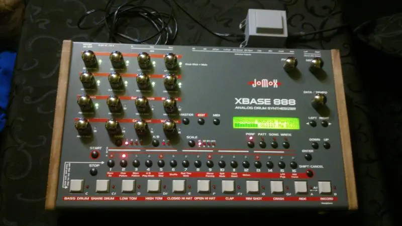 Zum Verkauf steht ein Jomox XBASE 888 analog Drumcomputer mit Metalldrehknöpfen.