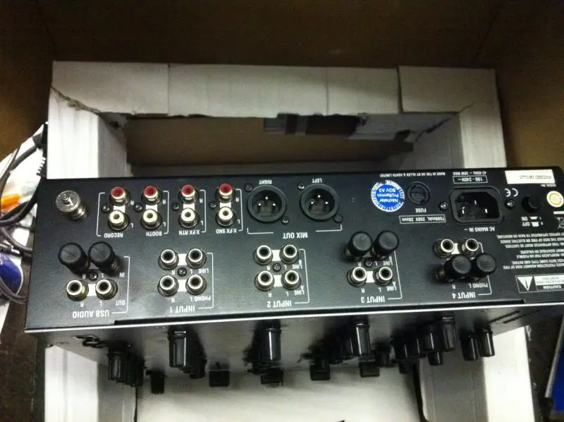 - Ausgänge: 1x Master (XLR), 1x Kopfhörer (6.35mm), 1x Booth (RCA), 1x Record (RCA), 1x Send (RCA)