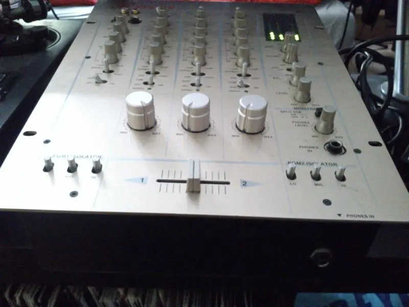 Kanal 1 und 3 sind dem Crossfader zugeordnet, der mittlere Kanal ist mit "Sub" beschriftet, es handelt sich also um einen 2+1 Kanäler. 3-Band Killswitches sind für Kanal 1+3 vorhanden. Jeder Kanal hat 2 Eingänge über Cinch (Line) und einen Cinch (Phono) (Sub nur je einmal, dafür über Cinch auf der Oberseite des Mixers ein Mikrofoneingang). Der Master-Out ist einmal mit Cinch und einmal mit Klinke versehen. Zudem gibt es die Möglichkeit ein externes Gerät über Send-Return mit Klinke anzuschließen. Mikrofoneingänge liegen 2 auf der Oberseite (Klinke).