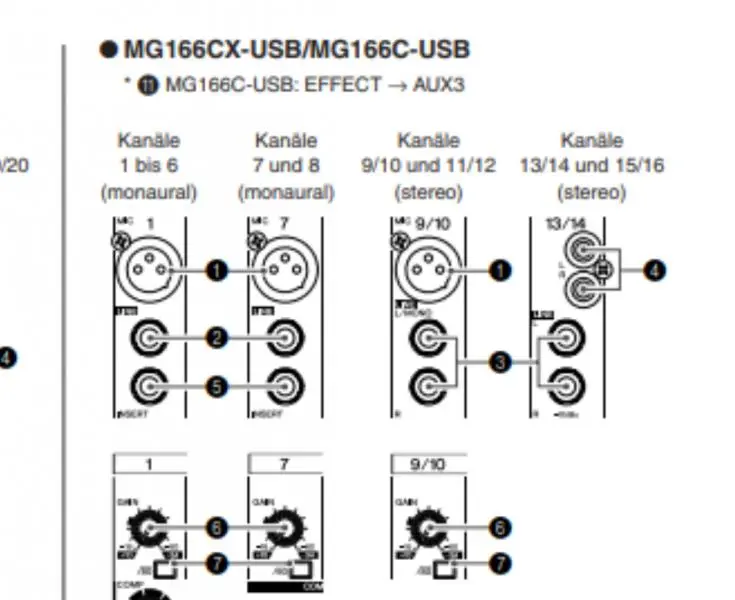 Jeweils eine Buchse wurde bereits vom Mischpult verwendet.